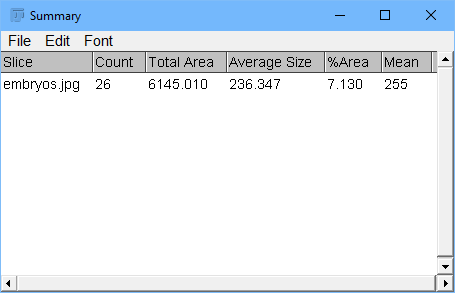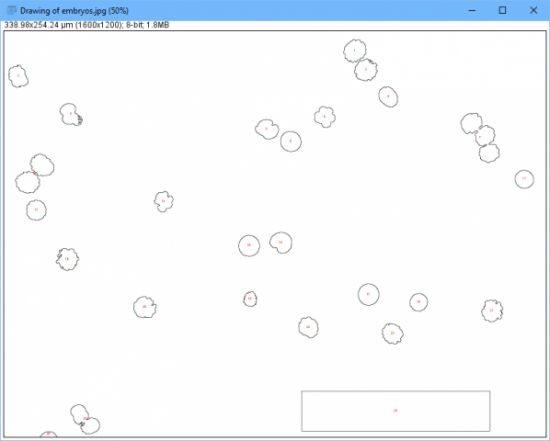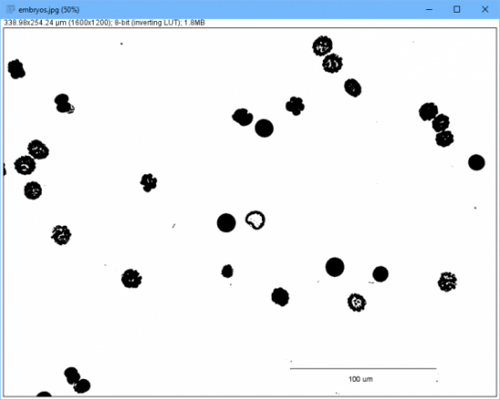 那么,现在,用 Fiji/ImageJ 可以做什么呢?举一例,统计图片中的物品数。你可以通过点击“File”->“Open Samples”->“Embryos”来载入示例。
