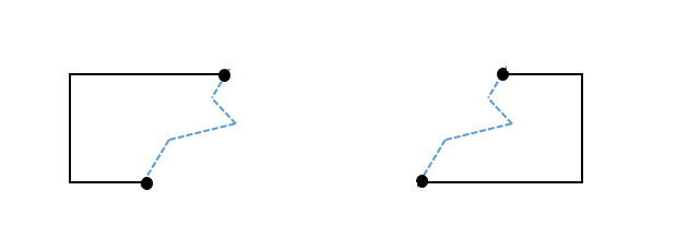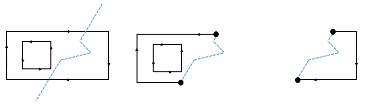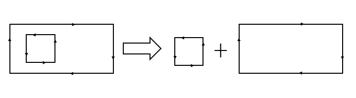 2、将分割的两条线根据切割点与切割线进行拼接,分别组成两个多边形,(需要注意的是线的方向性问题)
