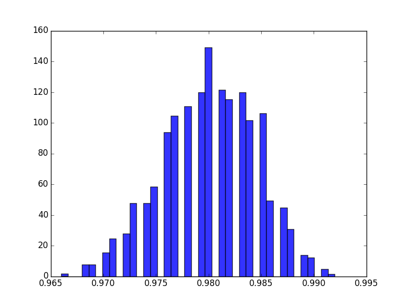 for key in result: print "%s: %d" % (key, result[key]) return result["yes"] / n同样的方法绘图得到结果: