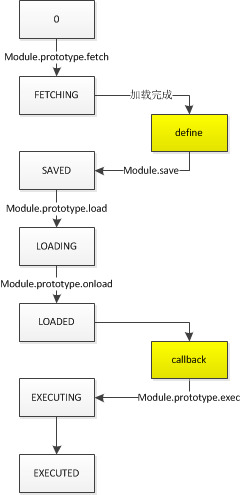 事实上是这样的,但也不完全是!下面来开始看SeaJS的代码(sea-debug.js)。一个模块在加载的过程中可能经历下面几种状态: