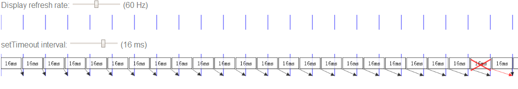 60fps是动力也是压力,因为它意味着我们只有16.7毫秒(1000 / 60)来绘制每一帧。如果使用setTimeout或者setInterval(以下统称为timer)来控制绘制,问题就来了。