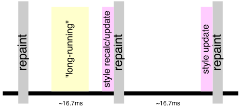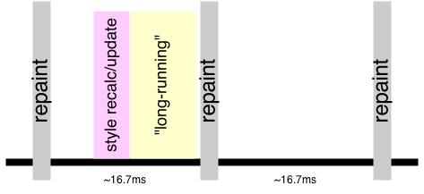 el.style.backgroundColor = "blue"; // ...});// do some "long running" task, like sorting data可见即使我们在这里没有使用到动画,但仍然可以使用rAF优化我们的代码。执行的顺序会变成: