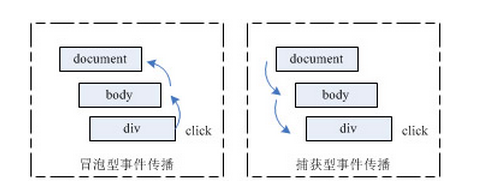 事件冒泡是微软公司提出解决事件流问题的方案,而事件捕获则是网景公司提出的事件流解决方案,它们的原理如下图: