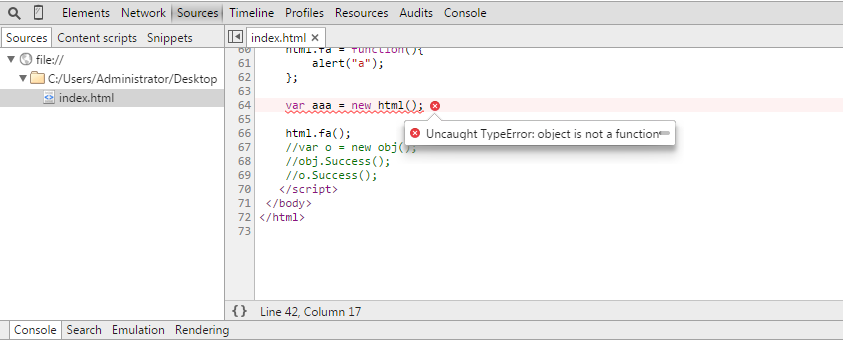 alert("Obj Success");变量html是一个对象,不是函数,所以没有Prototype属性,其方法也都是公有方法,html不能被实例化。否则会出现如下错误:
