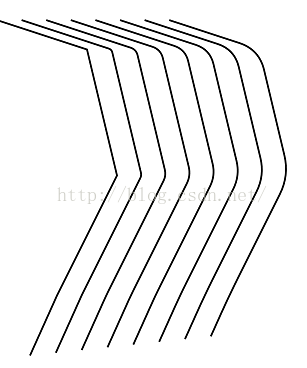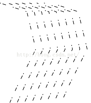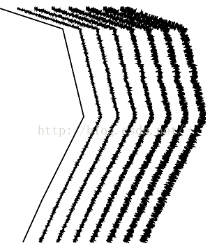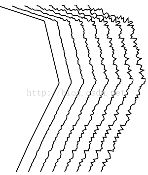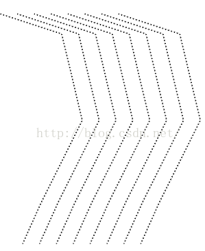 第一条线偏移量为0,所以看不出来有什么变化。下面再来修改一下,每隔长度为1就中断一次,3*i是偏移的最大长度,