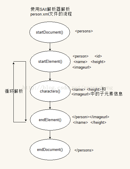 基本了解完SAX解析工作原理及开发时用到的常用接口和类后,接下来我们来学习一下使用SAX解析XML的编程步骤,一般分为5个步骤,如下: