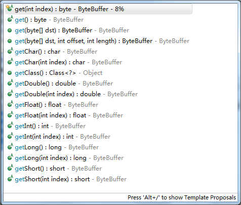 buffer.get(target);//自动读取target.length个数据for(byte b : target){