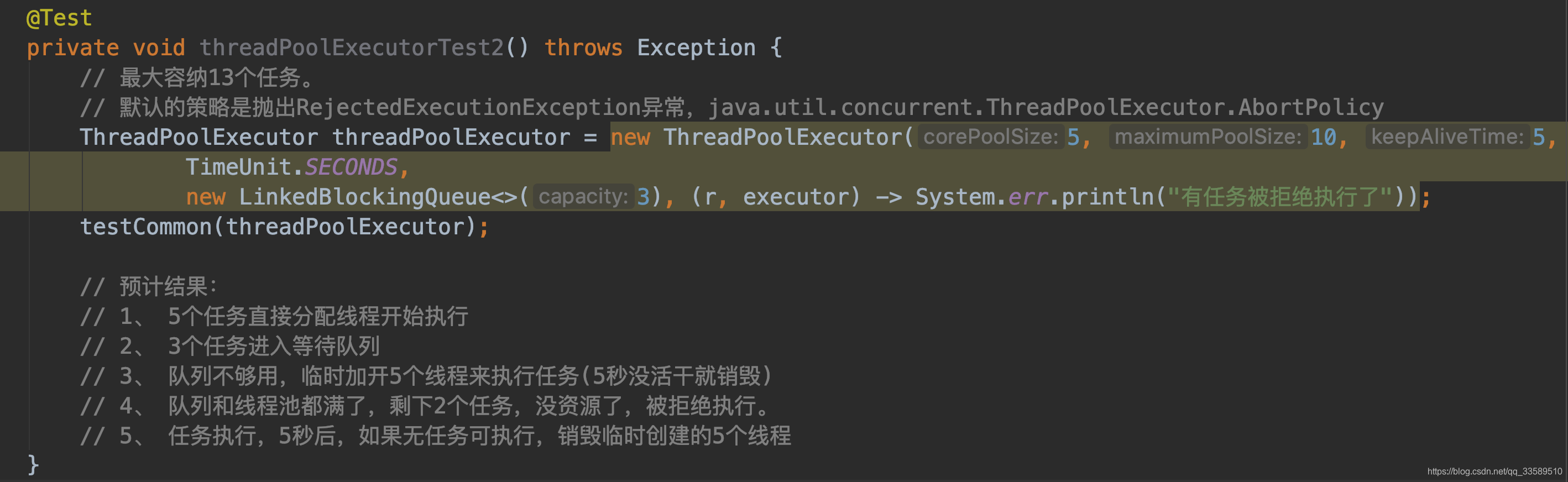 - 如果有其他特殊要求,则可以直接使用ThreadPoolExecutor类的构造函数来创建线程池,并自己给定那五个参数。