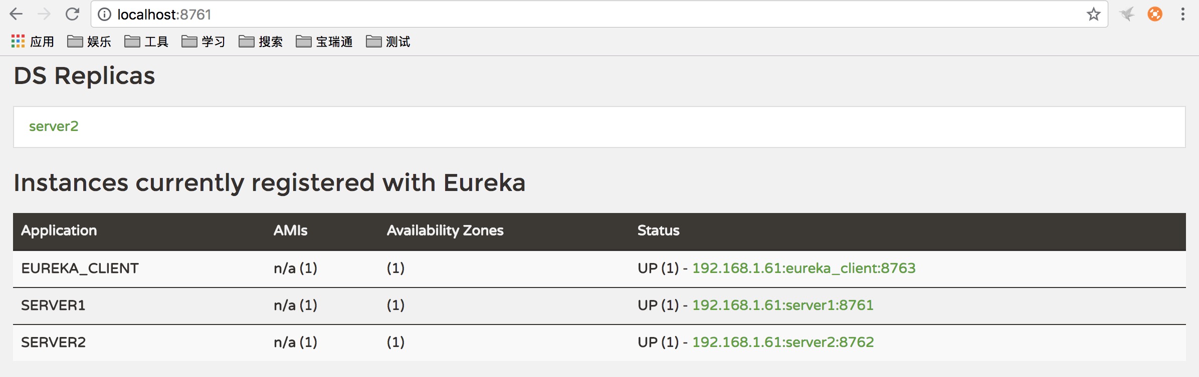 查看一下eureka管理页面,如下: