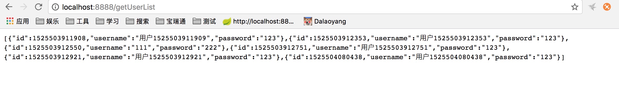 然后访问http://localhost:8888/getUserList可以查看刚才创建的数据,如下图: