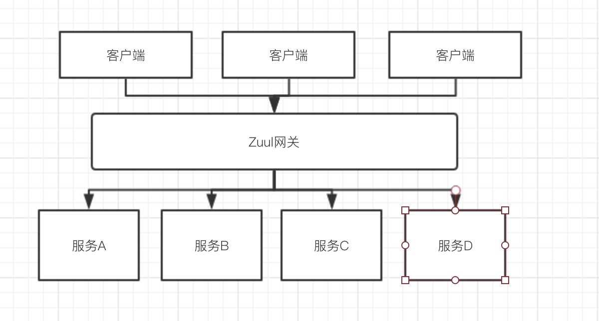 客户端想要请求到服务,首先请求到zuul网关,然后zuul网管将请求分发到对应的服务去。