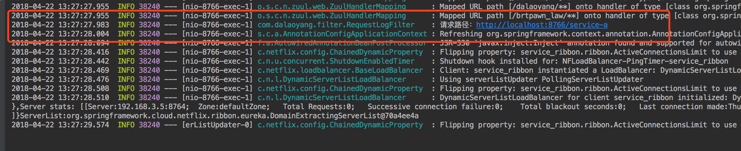 }在重启项目,访问http://localhost:8766/service-a,然后看控制台可以看到如下图: