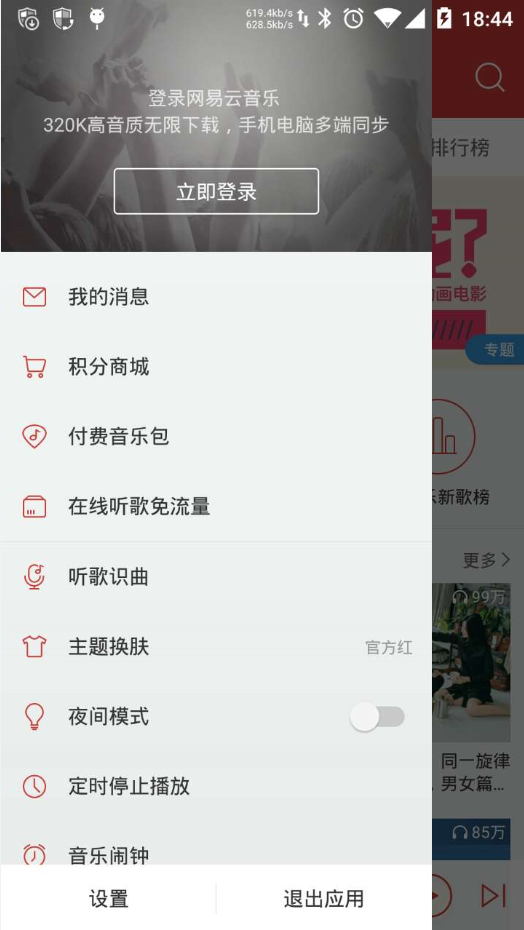 NavigationDrawer是 Google 在 Material Design 中推出的一种侧滑导航栏设计风格。说起来可能很抽象,我们直接来看看 网易云音乐 的侧滑导航栏效果
