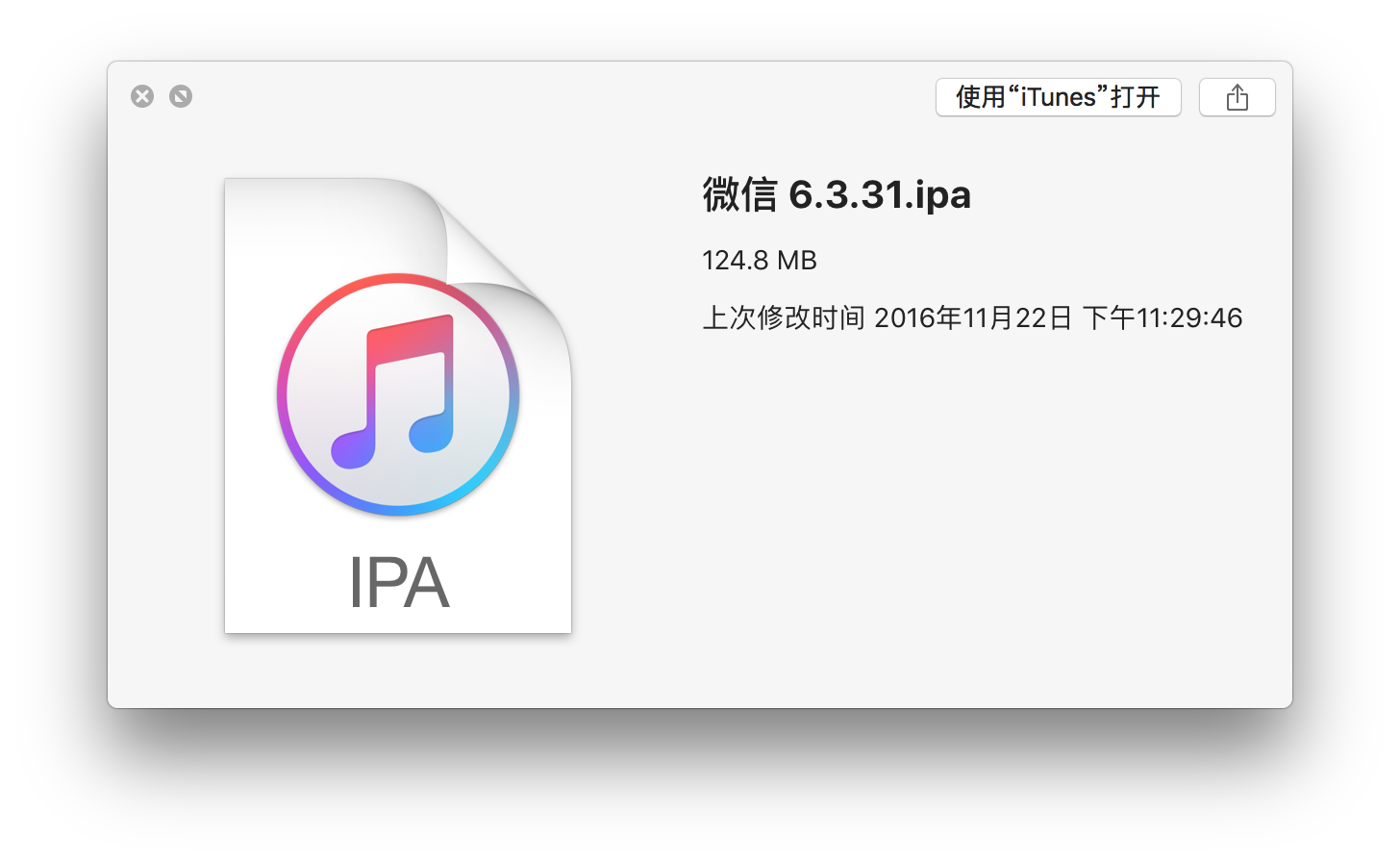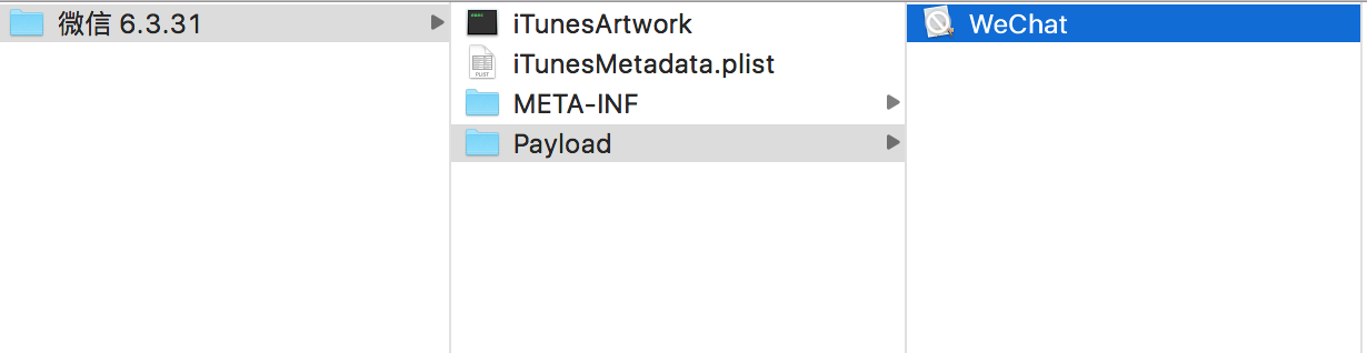 例如,我们通过iTunes Store下载微信,然后获得ipa安装包,然后实际看看其安装包的内容。