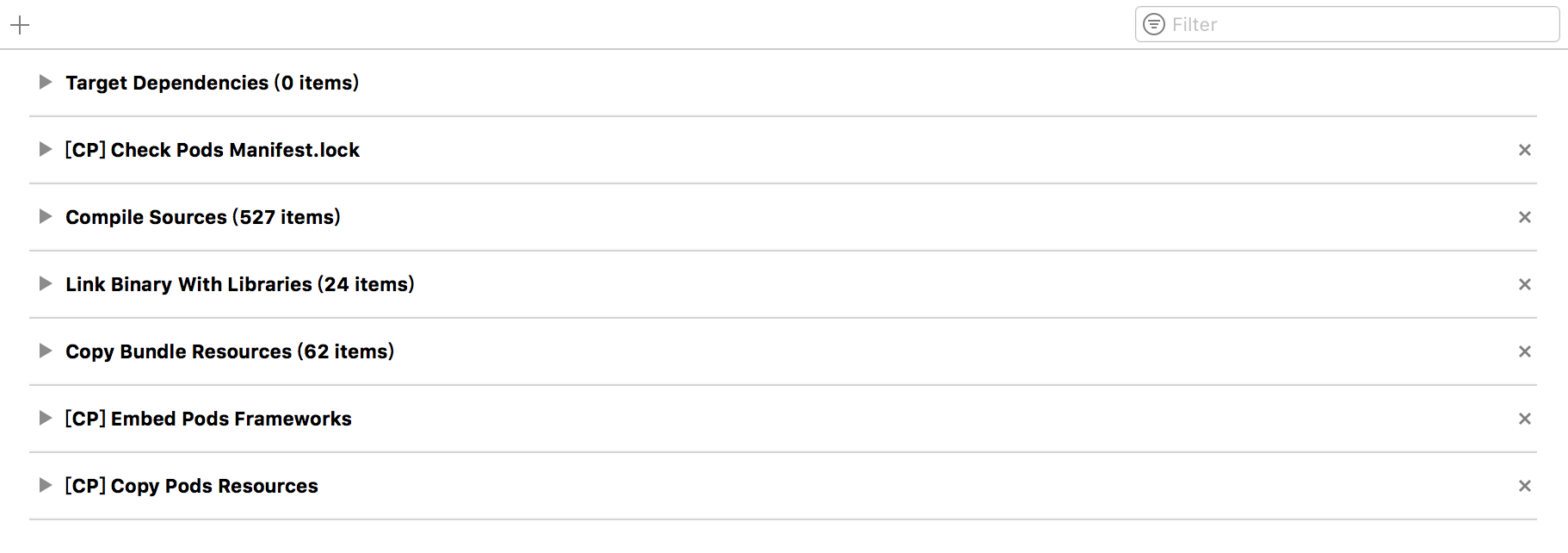 通常,如果你使用CocoaPod来管理三方库,那么你的Build Phase是这样子的: