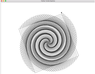 exec """\nfrom turtle import *\nfor i in range(500): \n forward(i)\n left(91)\n"""