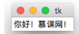 python -c "from Tkinter import *;root = Tk();w = Label(root, text='你好!慕课网!');w.pack();root.mainloop()”