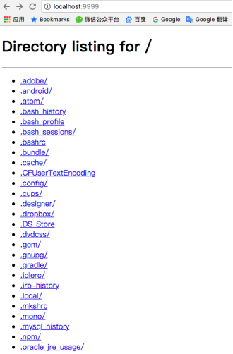 在本地,输入网址 localhost:8888即可访问,默认会列出你的本地目录: