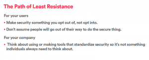 Plattner 的第三个建议:要使安全容易实施。她建议采取阻力最小的道路。
