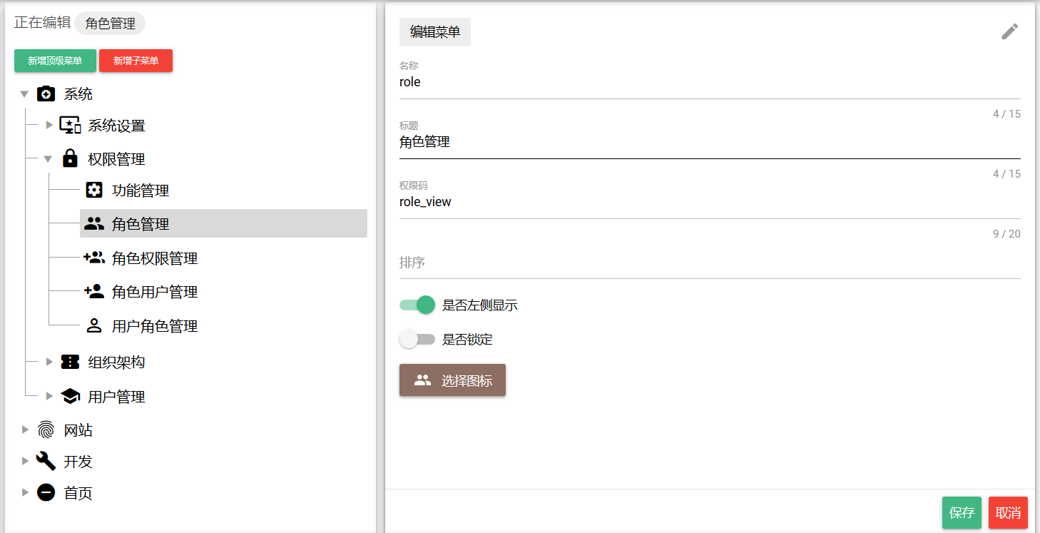 菜单需要与路由做一一对应,前端添加了新功能,需要通过菜单管理功能添加新的菜单,如果菜单配置的不对会导致应用不能正常使用