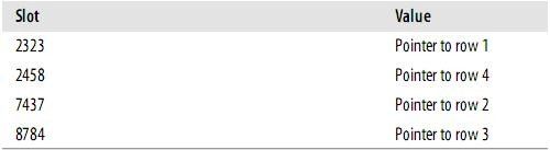 MySQL会计算’Peter’的hash值,然后通过它来查询索引的行指针。因为f(‘Peter’) = 8784,MySQL会在索引中查找8784,得到指向记录3的指针。