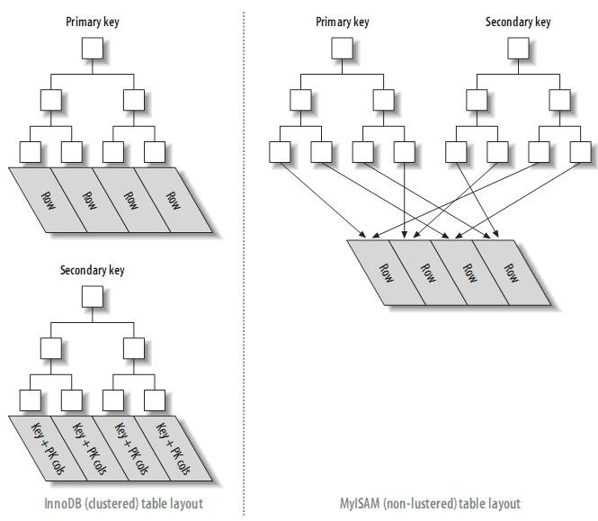 实际上,在MyISAM中,primary key和其它索引没有什么区别。Primary key仅仅只是一个叫做PRIMARY的唯一,非空的索引而已。InnoDB的数据布局