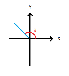 这里的夹角(θ)还需要注意一点,是X正半轴按逆时针的方向旋转然后得到的夹角,如图。