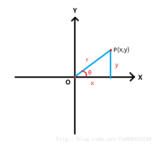 如图,在一平面直角坐标系上有一点P且坐标为(x,y),原点到P点的距离为r,且这两点所在的直线与X轴正半轴形成的夹角为θ,那么: