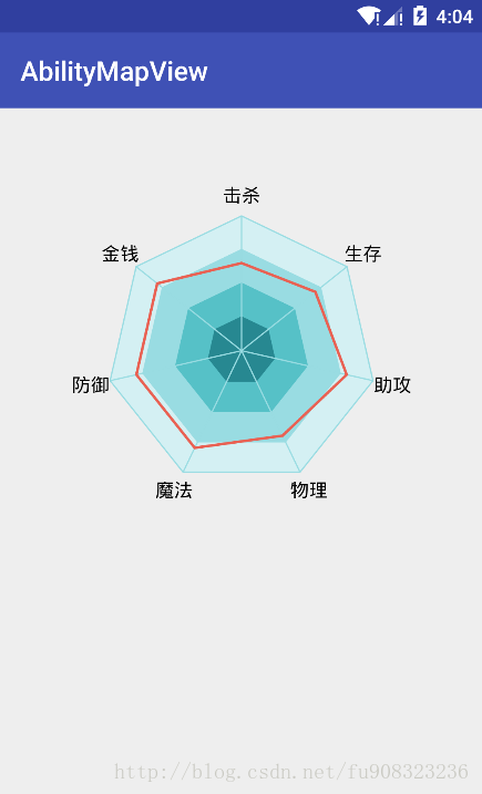 到了这里,能力七星图的自定义View就算是大功告成了。