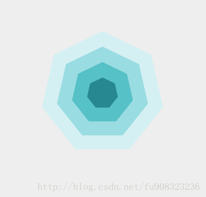 }1234567891011121314151617181920212223242526272829303132333435363738394041424344这里就是绘制多边形的,由于我们前面已经把多边形的顶点都出计算出来了,所以这里我们只需通过循环给Path设置好路径,然后一层一层的画,通过switch为每一层设置不同的颜色,就能看出层次感,一圈一圈的。需要注意的是要调用linePaint.setStyle(Paint.Style.FILL_AND_STROKE);,因为我们是要绘制实心的。
