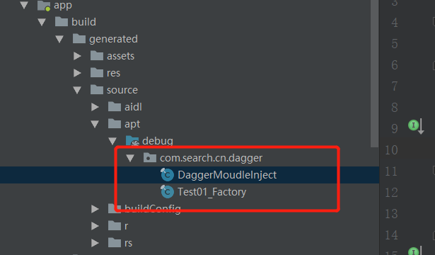 3、在以上两个步骤完成后,需要build一下工程,会自动生成接口的实现类,命名为DaggerXXX.class,其中XXX为你定义接口的名字: