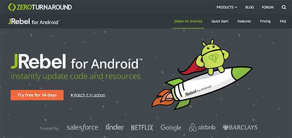 每当等待永远也编译不出来的Gradle的时候,我们都会疯掉。JRebel的这个工具可以显著的提高编译速度。价格取决于开发者数量以及协议时长。