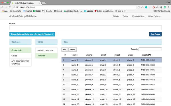 Android Debug Database是一个非常酷的开源工具,完全改变了debug 数据库和shared preferences的方式。现在你可以在一个漂亮的界面上查看,编辑,删除数据,以及运行sql语句。