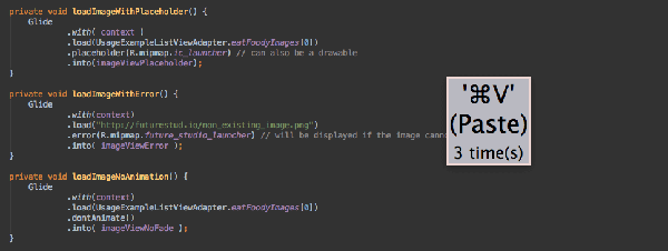注:比如我们要使用glide,只需在一个输入框中输入glide,下面就会显示glide的完整依赖。有时候搞不清楚拼写或者版本号这些细节的话很有用。