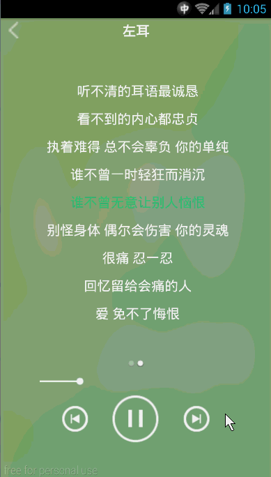 这样,一个带有平滑滚动效果的歌词控件就完成了。