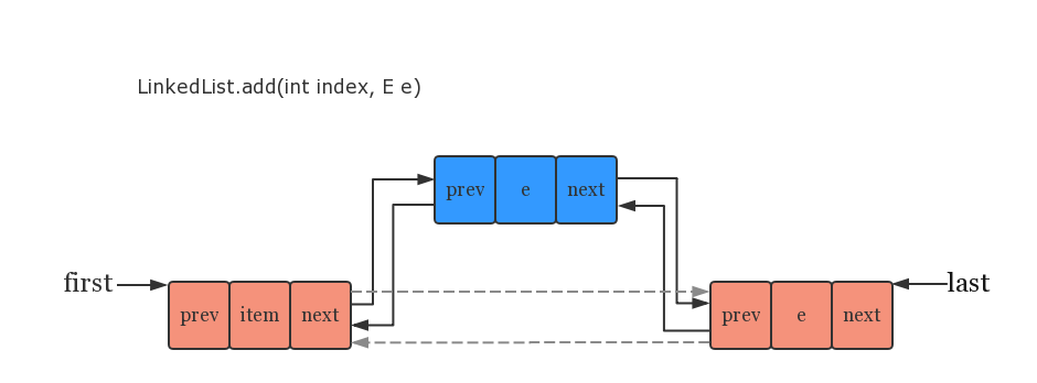 final Node<E> newNode = new Node<>(pred, e, succ); //将结点 succ 的上一个结点指向 newNode