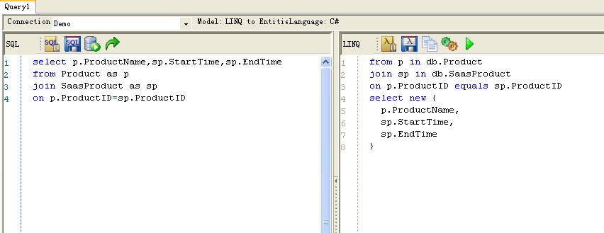 这些天写Linq挺烦人的,就上网搜搜可有什么好的sql转Linq的工具,咦,马上就看上了Linqer。