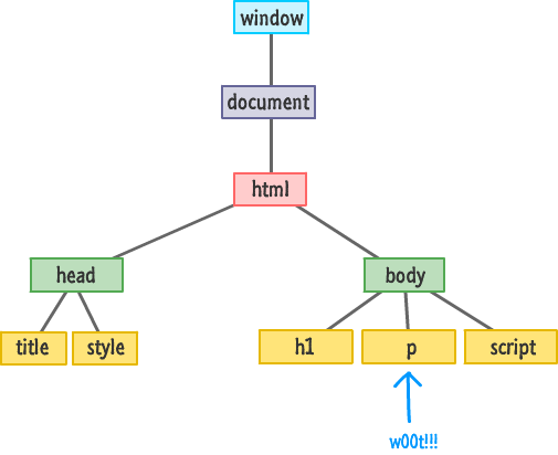 下图就是一个简单的DOM树,即使用createElement()方法和appendChild()给HTML新添加的p元素(新添加的p元素位于</body>之前):