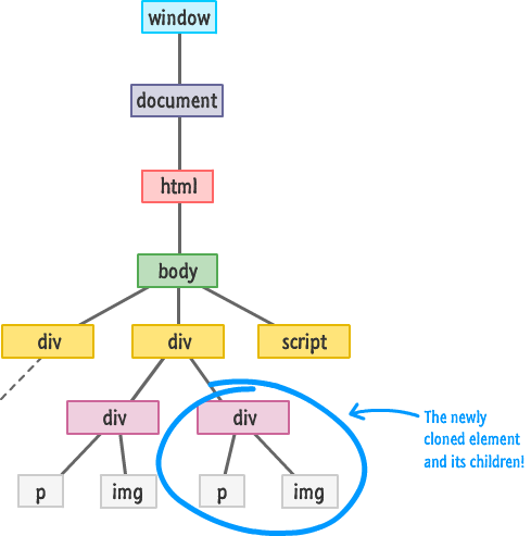 在DOM中克隆一个元素方式也很简单,在希望克隆的元素上调用cloneNode函数,并提供一个true或false的参数,以指定是否想克隆元素或元素及其所有子元素。