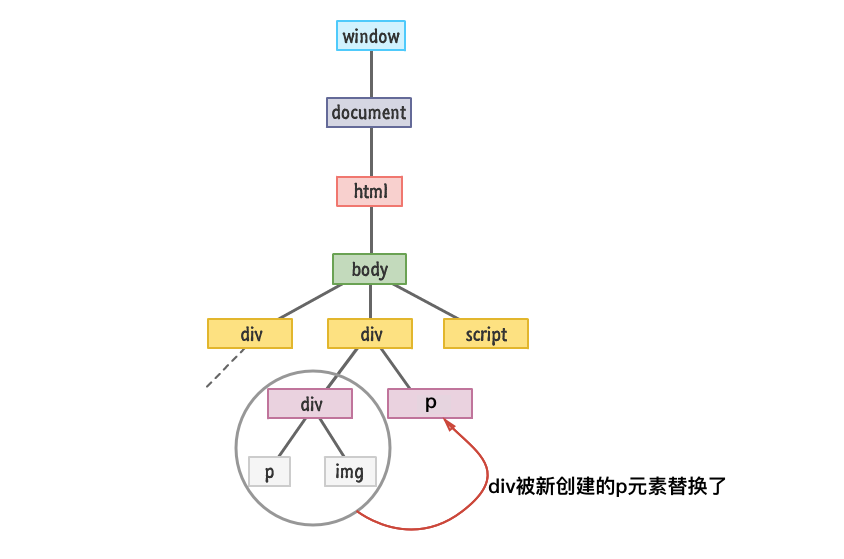 oldElement.parentNode.replaceChild(newElement, oldElement)这个时候DOM的结构变成了: