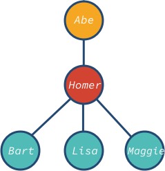 // create nodes with valuesconst abe = new TreeNode('Abe');const homer = new TreeNode('Homer');const bart = new TreeNode('Bart');const lisa = new TreeNode('Lisa');const maggie = new TreeNode('Maggie');// associate root with is descendentsabe.descendents.push(homer);