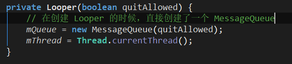 显而易见,确实在创建了 Looper 对象的时候,自动创建了消息队列对象 MessageQueue。