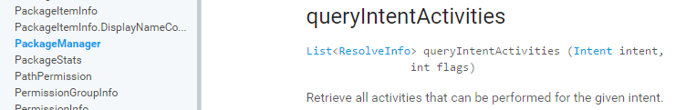 List<ResolveInfo> list = packageManager.queryIntentActivities(intent, PackageManager.MATCH_DEFAULT_ONLY); return list.size() > 0;