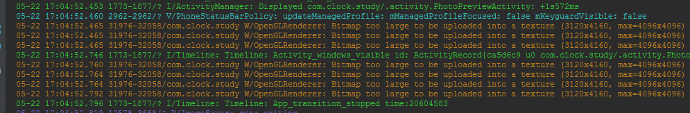 每次拍完照片,都会出现上面这样的 log ,果然,因为图片太大而导致在 ImageView 上无法显示。到这里有童鞋要吐槽了,没对图片的采样率 inSampleSize 做处理?天地良心啊,绝对做处理了,直接看代码:
