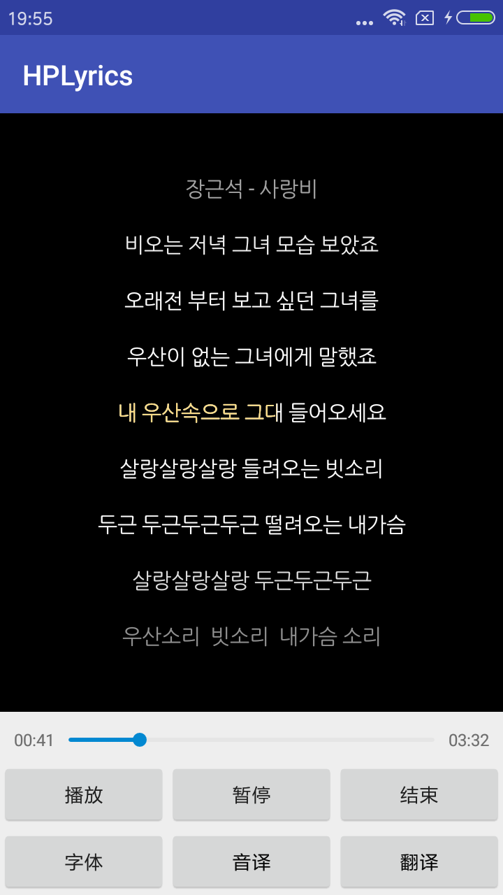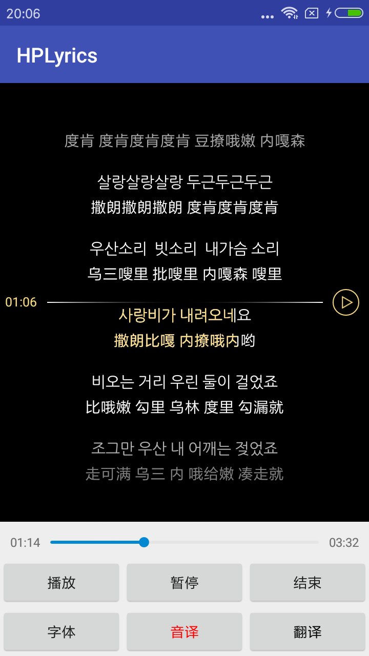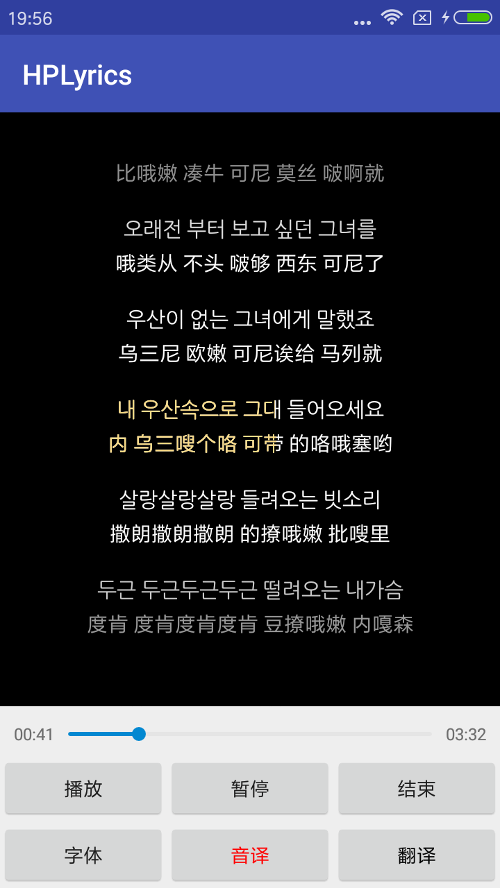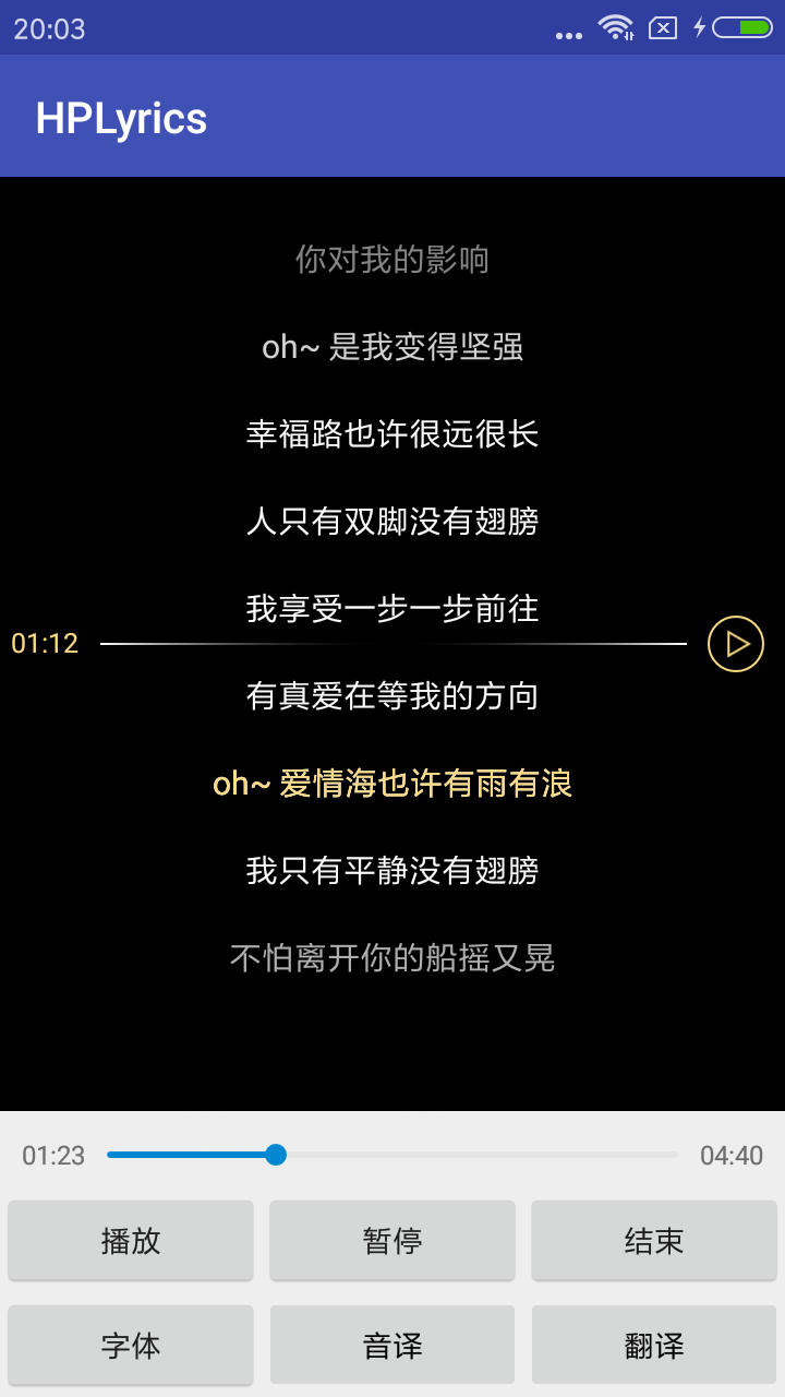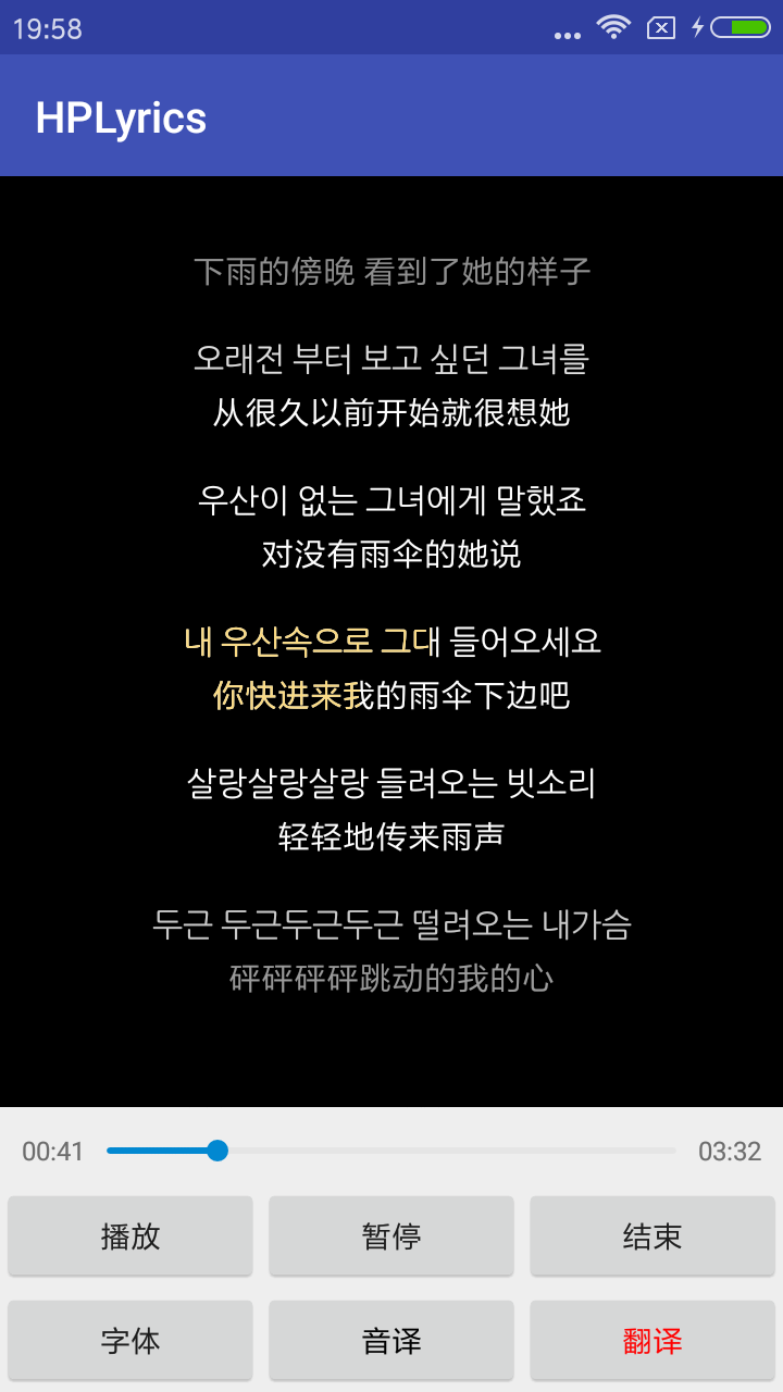 Android仿酷狗动感歌词(支持翻译和音译歌词)显示效果