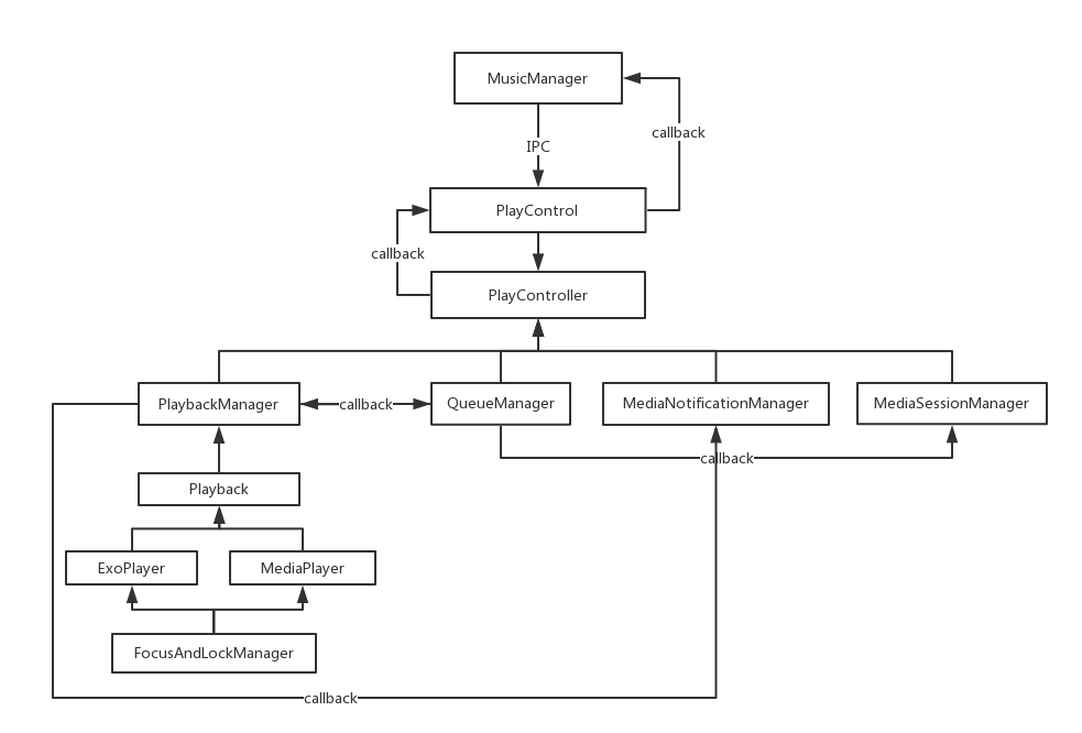 具体的播放器 ExoPlayer、MediaPlayer 的实现均实现了 Playback 接口,而 PlaybackManager 则是通过 Playback