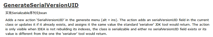 3.GenerateSerialVersionUID自动生成Serializable序列化。