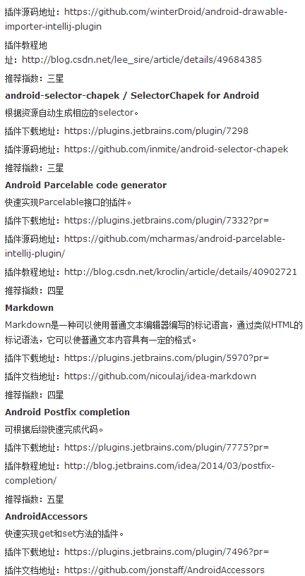 有人会问了,网上也有很多博客在讲Android Studio的插件总结,为什么你还要弄一篇博客呢?我可以告诉大家,网上讲的那些很多都是文字,要么就是给你一个链接,有些还是过时的,有些博客讲的比较全面,可是并没有分门别类去区分,很杂乱;有的博客做了分类,但是都是文字和链接,打开某些链接只是一些简单的图片,很简单。