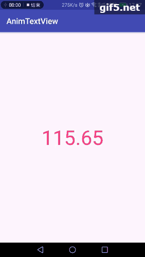 使用的时候,直接在animTv.setText(222.09);就可以了,在这里需要注意的是,这里的数值只支持整型和小数显示,小数只支持到小数点后两个位,如果有小数点后有3位以上,自动四舍五入