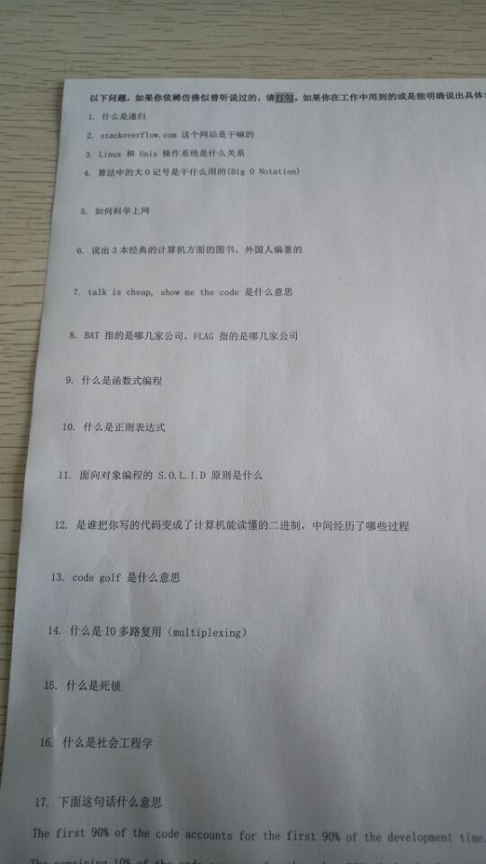 附上一张我朋友在某家公司面试的笔试题目,各种雷人各种无语: